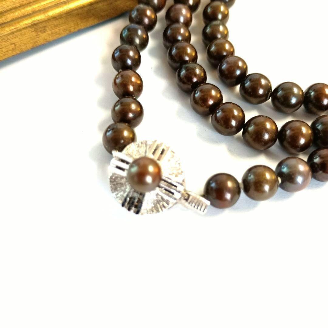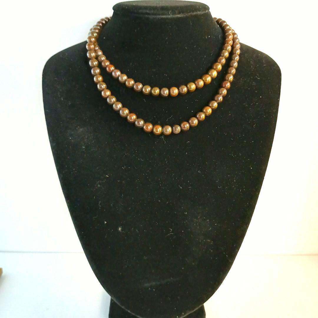 本真珠 淡水パール ロングネックレ スブラウン系